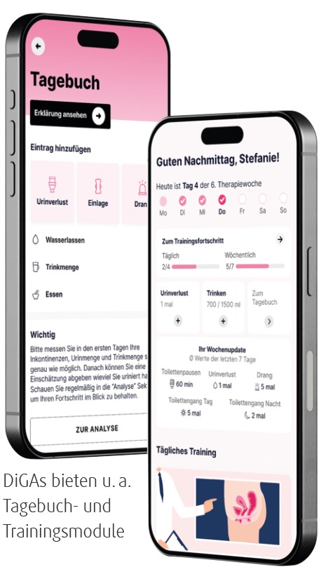 Der Markt ist heterogen. Eine strukturierte Bewertung von PFMT-Apps per Mobile App Rating Scale (MARS) zeigte, dass nur ein Teil der Anwendungen hohe inhaltliche Qualität, Transparenz und nutzerfreundliche Trainingslogik aufweist; Datenschutz- und Evidenzangaben waren häufig unvollständig [8]. In Deutschland gibt es 3 Apps, die als DiGA zertifiziert sind und so diesen Kriterien sicher entsprechen: Kranus Mictera [9] und INKA bei Inkontinenz, Hello Better Vaginismus Plus bei Vaginismus und Dyspareunie.